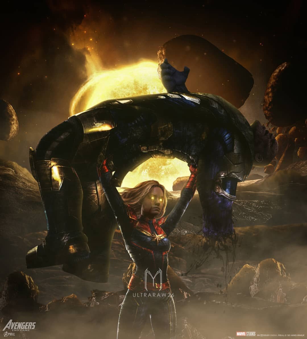 Во-первых, уже давно ходят слухи, что Мстители соберутся вместе и отправятся к титану домой, чтобы там начать финальное сражение. Фактически, это и хотел сделать Тони Старк и "Войне Бесконечности", когда полетел на Титан. Это и демонстрирует фон изображения: Капитан Марвел сражается со злодеем на другой планете.