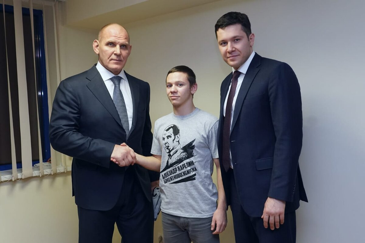 В Калининграде накануне, 19 января, стартовал чемпионат России по греко-римской борьбе. Соревнования открыл легендарный борец Александр Карелин, глава национальной федерации спортивной борьбы Михаил Мамиашвили, а также губернатор Антон Алиханов. Последний отметил, что Калининград принимает престижные соревнования впервые, напомнив, что сам он увлекается спортом. «Чемпионат пройдёт на самом высоком уровне», — сказал Алиханов, прежде по поручению президента России устроив для одного из юных болельщиков встречу с Карелиным. 17-летний Денис Жуков написал письмо Владимиру Путину с просьбой устроить встречу с легендарным борцом и кумиром, и тот поручил это дело губернатору Калининградской области — как раз на чемпионат России по греко-римской борьбе должны были приехать все звёзды этого вида спорта. Александр Карелин вручил майку со своим изображением Денису Жукову и совместно с юным борцом и губернатором Калининградской области сделал памятную фотографию. Отметим, в стенах дворца спорта «Я