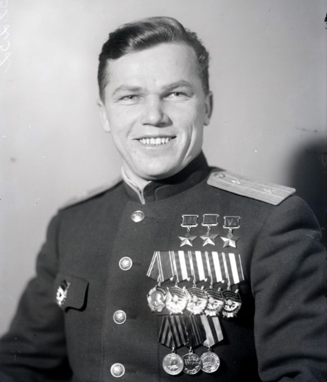 Маршал авиации (1985), Герой Советского Союза (1944 – дважды; 1945). В Великую Отечественную войну в истребительной авиации, командир эскадрильи, заместитель командира полка, провёл 120 воздушных боёв; сбил 62 самолёта Трижды Герой Советского Союза Иван Никитович Кожедуб на Ла-7 сбил 17 самолетов противника (в том числе реактивный истребитель Ме-262) из 62 сбитых им за время войны на истребителях марки Ла. Один из самых памятных боев Кожедуб провел 19 февраля 1945 г. (иногда указывается дата 24 февраля). В этот день он вылетел на свободную охоту в паре с Дмитрием Титаренко. На траверсе Одера летчики заметили самолет, быстро приближавшийся со стороны Франкфупта-на-Одере. Самолет шел вдоль русла реки на высоте 3500 м со скоростью, гораздо большей, чем могли развить Ла-7. Это был Ме-262. Кожедуб мгновенно принял решение. Летчик Ме-262 понадеялся на скоростные качества своей машины и не контролировал воздушное пространство в задней полусфере и внизу. Кожедуб атаковал снизу на встречн