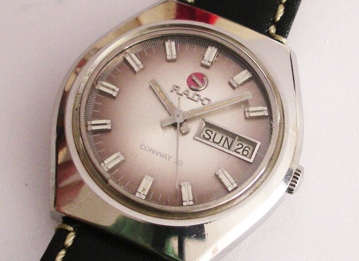 Вчера я так и не выложил ни одной статьи на свой канал. Все-таки был праздник и все свои дела пришлось отложить. Ну а сегодня хочу поделиться с вами очередным рассказом своей новой находке с блошиного рынка, тем более что она на этот раз довольно интересная. Начну с того, что к наручным часам я всегда относился довольно прохладно. Сегодня это изобретение не так актуально как еще несколько лет назад, и рассматривать их стараюсь исключительно в качестве аксессуара. При этом как и многие из вас, я знаю, что лучшие часы делают в Швейцарии и стоимость некоторых экземпляров может достигать внушительных сумм. Фирм изготовителей я знаю не так уж и много, но о RADO слышал уже давно, и когда увидел этот экземпляр, решил за него поторговаться. Это мужские часы из серии CONWAY 20. Выпущены в семидесятые и являются классическим образцом винтажных наручных часов. Строгие, невычурные, классические. Подходят к абсолютно любому образу и одежде. Знаю, многие уже подумали, что это китайская копия, но