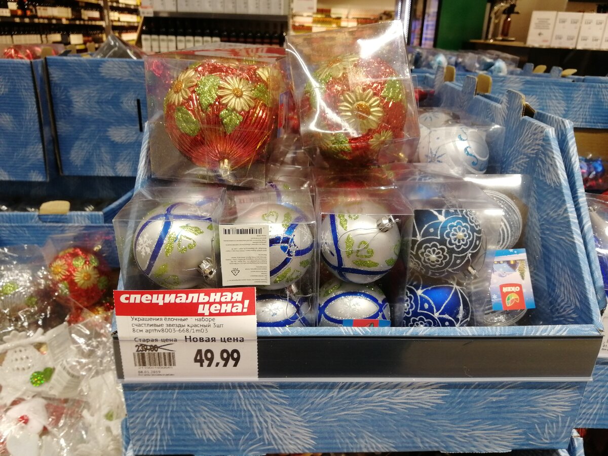После новогодних праздников многие магазины делают распродажи, где продаются праздничные товары. Магазинам не выгодно держать у себя товар, который понадобится только через год, поэтому проще продать по себестоимости, чем хранить на складе где-то, зря занимая место. Вот например, прошлась в выходные по магазину ОКей, распродают елочные игрушки по цене, в три раза меньше той, что была в декабре. Пусть пластиковые игрушки, но где вы еще по 2 рубля найдете? Я таких цена не видела уже лет шесть, чтобы что-то стоило меньше 5 рублей. Спичечный коробок и то дороже стоит. Мне нравится покупать после праздников игрушки на следующий год. Правда, я специально ищу на распродажах стеклянные игрушки, они после Нового года тоже вполне по адекватной цене продаются. Еще в магазинах распродается растения, напоминающие елки. Например, в Пятерочке продаются маленькие елочки и туя всего ..по 30 рублей. Я себе елочку одну прикупила. Вот чек, если кому-то не верится. Сейчас полезла в интернет, оказывае