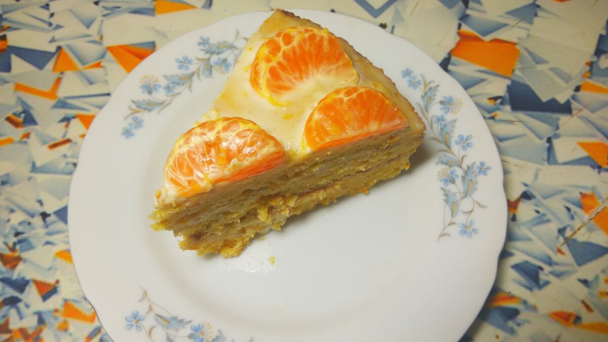 Мало кто знает, что этими, на первый взгляд, отходами можно заменить муку. После того, как вы однажды попробуете приготовить этот торт, вы больше никогда не выкинете мандариновые корки в мусор, поверьте мне! Минус этого десерта в том, что его не испечешь с бухты-барахты. Нужно подготовиться. В первую очередь, насушить мандариновых корок. Поэтому мойте фрукты хорошенько перед тем, как кушать. Сушеные корки с помощью блендера нужно измельчить до состояния муки. Желательно просеять через не очень мелкое сито. Я еще добавляю кусочки цедры покрупнее, мне нравятся их вкрапления в коржах. Ингредиенты для коржей: Из этого количества получается 3 коржа. Ингредиенты для крема: Можно проложить коржи кусочками мандарина и украсить ими торт сверху. Готовим: 1) Измельчаем корки в муку, просеиваем, берем стакан такой муки. 2) Молоко вскипятить. Пока оно нагревается, смешиваем мандариновую муку с сахаром и солью. 3) Вливаем кипящее молоко и быстро перемешиваем. Я использовала миксер. 4) Затем добавл