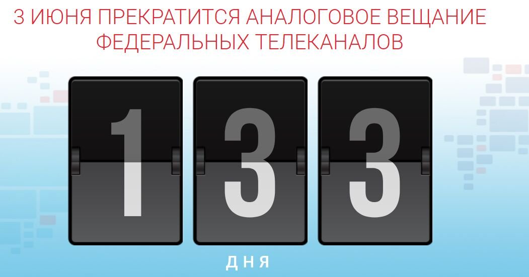 План отключения аналогового телевидения в РФ, утвержденный решением Правительственной комиссии по развитию телерадиовещания от 29 ноября 2018 г. предполагает поэтапное отключение. Первопроходцем здесь была Тверская область, которая перешла на цифру еще 3 декабря 2018 года. Далее будет 3 этапа, на каждом этапе отключаются от аналога определенные области: Найти свой регион с датой отключения можно на сайте РТРС . Кто не успел обновить прикупить новый телевизор или приставку - остается немного времени. Хотя это можно сделать за счет государства, для определенных категорий граждан в некоторых областях. Вот пример для Тульской области: Аналоговое вещание продолжат многие операторы кабельного телевидения, которые предлагали услугу кабельного аналогового вещания. Ждем полного отключения 3 июня! В принципе частоты аналога освободятся и кто-то займет их...Для чего освободили данные частоты покажет время...