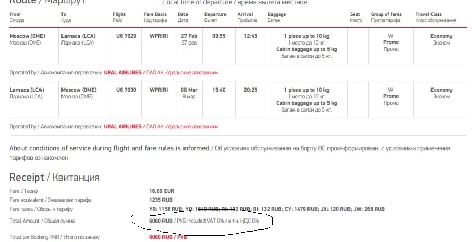 Летим с "Уральцами" (Уральские авиалинии"). Хотя, казалось бы, дешевле всего было лететь с "Победой". Но по факту оказалось, что самые дешевые билеты, да еще и с багажом и ручной кладью - у "Уральцев" по тарифу Промо. Он не возвратный, разумеется. Невозможны никакие изменения. Так что, если по какой-то причине в отпуск улететь не получится (тьфу-тьфу-тьфу), ничего нам не вернется (о том, когда можно вернуть деньги по невозвратному тарифу я уже писала здесь).
