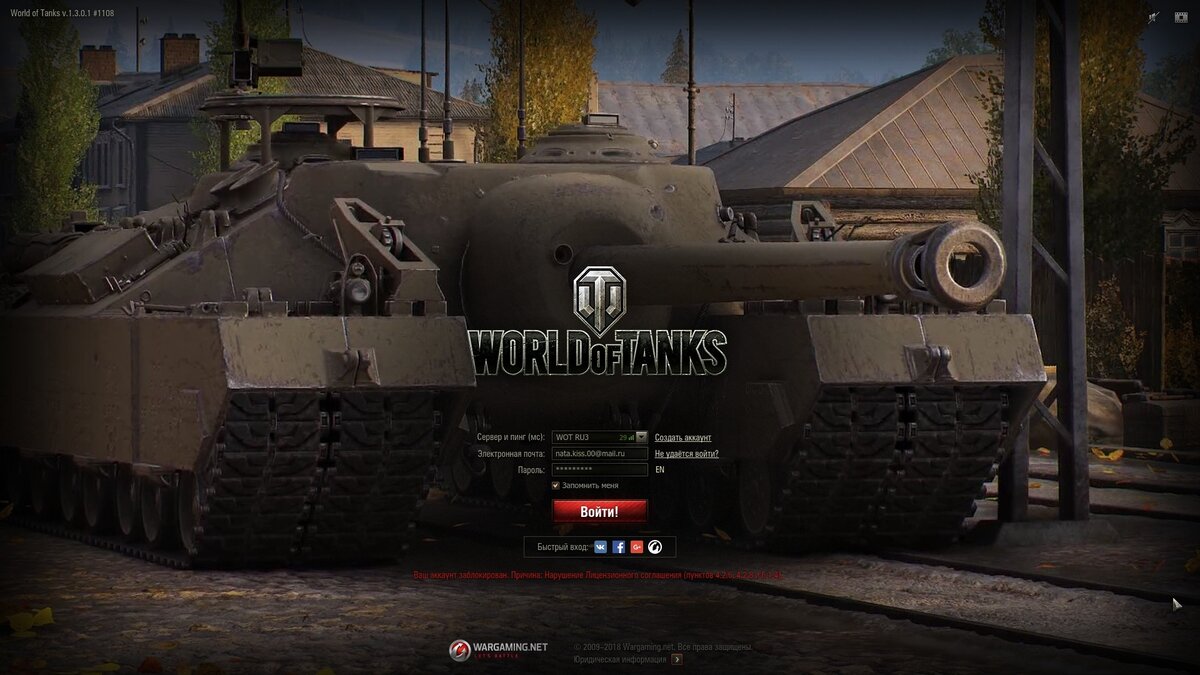 18 января (ПТ), днём, Wargaming забанил перманентно аккаунт блогерши Натальи [Kiss_me__|Kiss Me] (20k подписчиков на YouTube) за передачу аккаунта kiss_me__. Пункты 4.2.6, 4.2.8 и 6.1.4 (Передача прав в отношении Игры, Отчуждать и иным образом передавать свой Аккаунт и Самостоятельно принимать меры по обеспечению безопасности Аккаунта и предотвращению его несанкционированного использования третьими лицами).