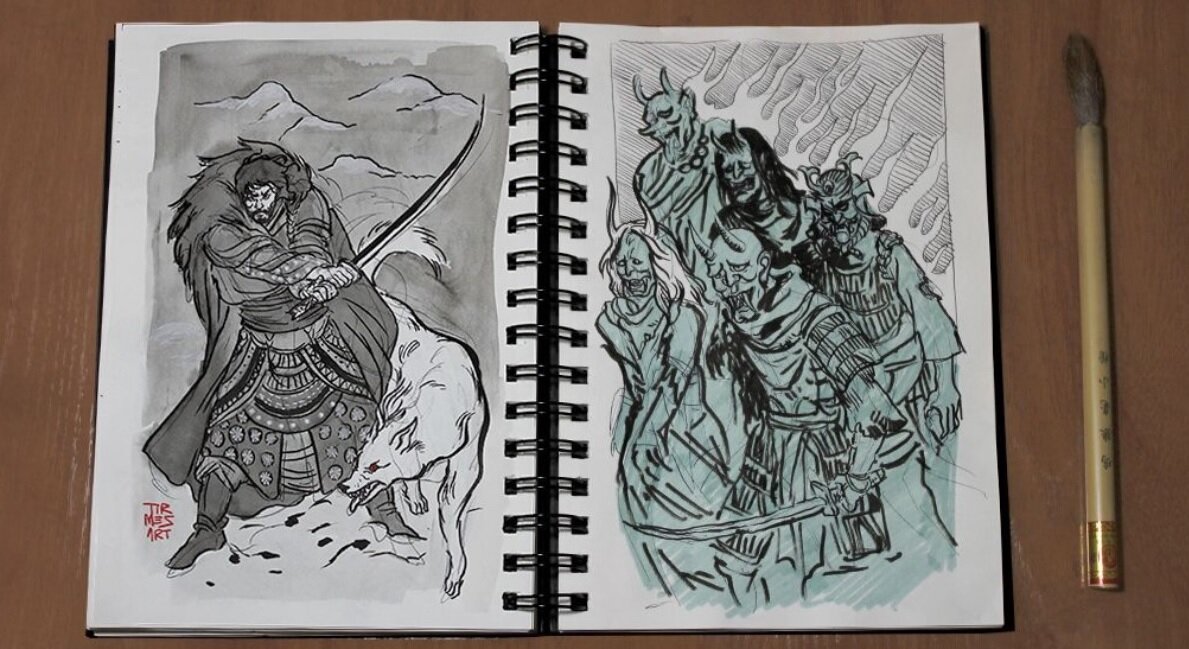 В ожидании последнего сезона "Игры престолов" слушаю спин-офф к саге Дж.Мартина про Межевого рыцаря и любуюсь иллюстрациями различных художников к сериалу. Ранее я писала о календаре Паленкара на тему "Игры престолов". А вчера натолкнулась на интересные рисунки испанской художницы Сандры Тирадо Местре, которые она сделала в японском стиле укиё-э. Она использовала, конечно, не саму технику этих гравюр, а сделала стилизацию в современной необременительной манере - сперва рисовала контуры, а красочный слой наносил компьютер. Вот эскизы: А это сама художница: В результате, по-моему, получилось неплохо. Общий характер стиля передан, и герои Мартина обрели японские черты. Каждый рисунок имеет надпись на кандзи, то есть иероглифы, раскрывающие суть изображения. Джон Сноу показан в образе самурая, иероглиф "наследник правителя": Серсея и Джейме Ланнистеры, иероглиф "запретная любовь". Этот рисунок мне не очень нравится, прежде всего колористически. Да и само изображение могло быть выразите