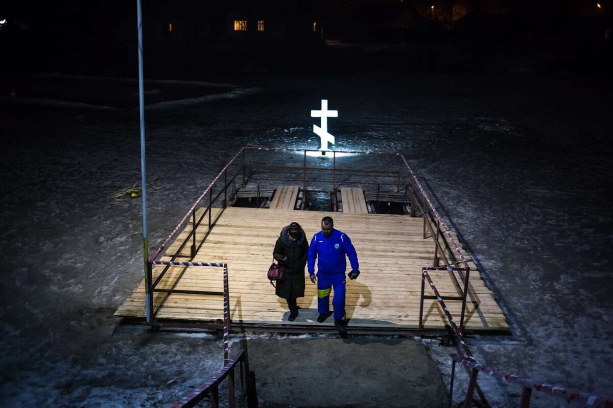 Представители ДЧС круглосуточно дежурят рядом со всеми местами купания. На крещенские праздники выпала на удивление "тёплая" погода, из-за чего лёд очень тонкий и трескается от большого количества людей на нём. Тем не менее окунающимся вода не кажется теплее.