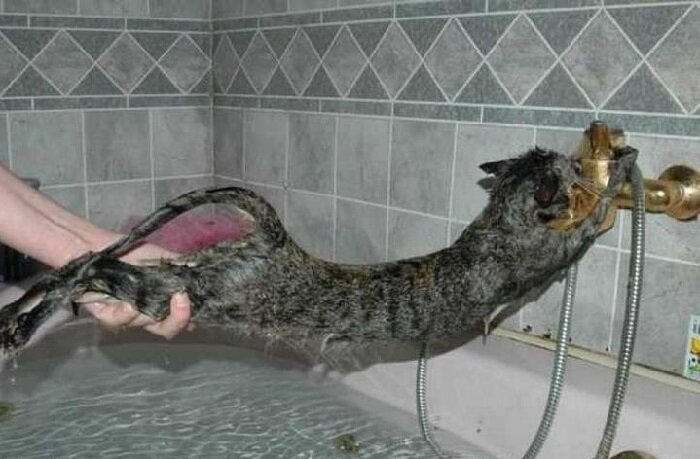 (Начало здесь) Праздник прошел. Крещение называется. С самого утра я заподозрила что-то неладное в поведении Больших. Как-то лукаво на меня посматривали, перешептывались между собой подозрительно тихо. Гладили слишком часто, "Рысечкой" называли. Не зря подозревала их в коварстве...Искупать меня решили. Унижение было сильным. Двое держали за лапы, а один поливал водой. Купали меня впервые за все время, что живу у них. И вроде все ничего- водичка теплая, шампунь нормальный, приятно пахнущий, вода в уши не попала, ласковые слова в утешение хором говорили. Да и недолго все было- минут за 5 управились. Потом над раковиной обжимали еще- тоже противно было... Вытерли почти насухо и тут же покормили вкуснятиной...А все равно обидно! Вообще-то я воду люблю. С первых дней в этом доме как кто-то в ванну воду набирает себе- я тут же лезла побродить в воде, пока она мне до спины не начинала доставать. Игрушки там всякие погонять плавающие, со дна что-то достать. Не понимаю, почему другие кошки эт