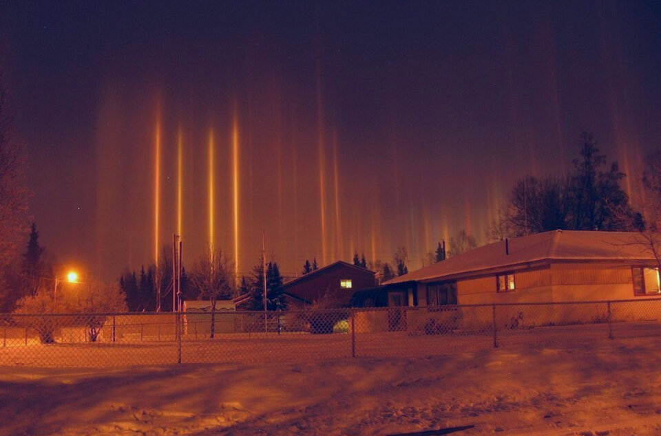 Радуга Глория Глория,- цветное гало, наблюдаемое на облаках, когда источник света находиться ровно за наблюдателем. При такой позиции внутри гало также наблюдается и ваш силуэт. Глорию можно увидеть с небоскребов, мостов, гор, а также с борта самолета. Паргелий Паргелий- яркое гало возникающее при преломлении света на определенных параметрах влажности воздуха. Такое гало рождает "ложные солнца", и такие явления, как "ложный рассвет" и "ложный закат"- они выглядят как столбы света в моменте когда само солнце находится за горизонтом, но "ложное солнце" находится в поле видимости. Ложный рассвет Лунный паргелий Световые столбы При постоянной низкой температуре влага замерзает в воздухе и ледяные кристаллики в атмосфере начинают работать как маленькие зеркала, многократно отражая свет от источников. Лунная радуга Перламутровые облака Шероховато-бугристые облака (Undulatus asperatus) Вымя-образные облака (mamatus) Лентикулярные (линзовидные) облака Многослойные не двигающиеся облака, кото