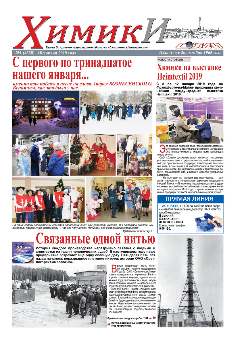 Рождественские и новогодние дни - хорошее время для радостных встреч, благотворительности, добрых дел. Химики участвовали во многих акциях, вспоминали прошлое, и конечно, продолжают думать о будущем. А впереди -- 55-летие предприятия! Готовимся!