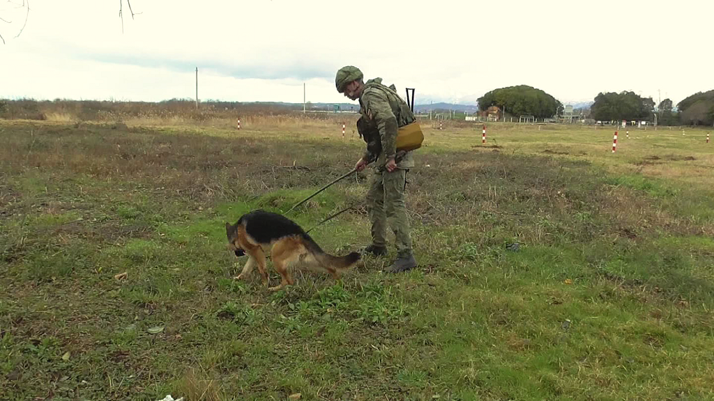 Военнослужащие инженерно-саперного подразделения Южного военного округа в Абхазии обнаружили и уничтожили взрывоопасные предметы. Такая тренировка впервые прошла в рамках тактико-специального учения. Оно было приурочено ко Дню инженерных войск России, который отмечается 21 января. Минно-розыскные собаки были доставлены в военную базу Абхазии в конце декабря прошлого года из центра служебного собаководства Московской области. За каждым «четвероногим новобранцем» закреплены вожатые, которые проводят с ними тренировки. И вот впервые они приняли участие в тактико-специальных учениях Они прошли на полигоне «Гудаута». В задачи военнослужащих входили разведка заминированных дорог и колонных путей, отдельных строений и участков местности, а также обнаружение самодельных взрывных устройств. Найденные взрывоопасные предметы уничтожали саперы в новейших общевойсковых комплектах разминирования ОВР-2. Кроме того, военнослужащие обследовали маршруты выдвижения боевой техники с применением современ
