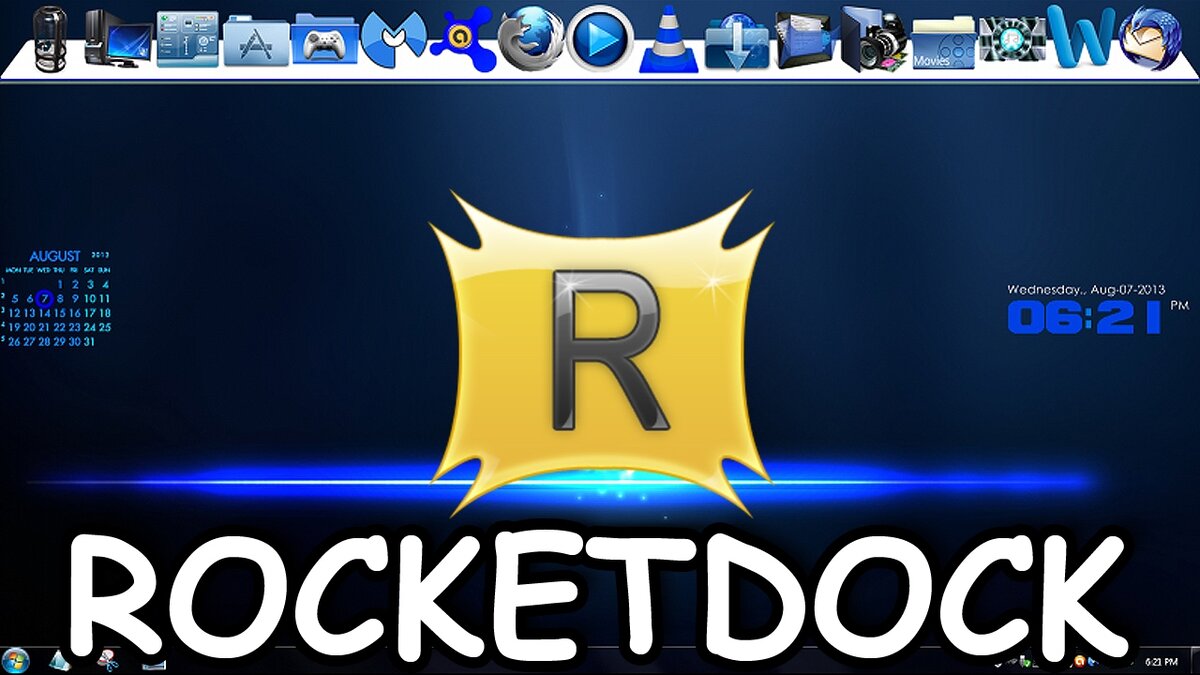RocketDock – это сторонняя старенькая программа, которая добавляет на рабочий стол компьютера анимированную панель быстрого запуска.