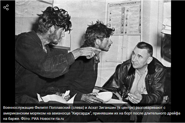 17 января 1960 года баржу "Т-36" с командой из четверых солдат-срочников унесло от курильского острова Итуруп в открытый океан. 49 дней дрейфа в океане.