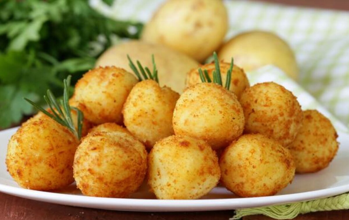 Нам понадобится: Картофель варёный - 1 кг Мука пшеничная - 1 стакан Мука картофельная - 2 ст л Яйца - 2 шт Соль и перец - по вкусу Панировочные сухари - для обсыпки Растительное масло - для жарки Начинаем готовить: Отварите картофель и приготовьте из него пюре. Затем добавьте яйца, муку и крахмал. Тщательно перемешайте. Посолите и поперчите по вкусу. Ещё раз перемешайте. Смочите руки прохладной водой и из полученной массы сформируйте шарики размером с грецкий орех. Разогрейте масло на сковороде. Поместите шарики на сковороду и обжарьте со всех сторон, до золотистого цвета. После того, как шарики будут готовы, поместите их на бумажное полотенце, для удаления лишнего жира. Если Вам понравился рецепт и Вас не затруднит, поставьте пожалуйста "палец вверх", поделитесь в социальных сетях со своими друзьями, подпишитесь. Эти действия очень помогут развитию канала. Буду Вам очень благодарен! Спасибо! Приятного аппетита!