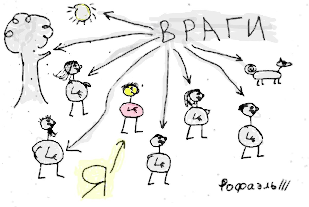 Возможно, что каждый человек, понимает он это или нет, живёт в окружении врагов. Подумал я об этом совершенно случайно, когда на днях смотрел фильм "Вторжение". Правда, скорее не из-за содержания, а из-за Николь Кидман. Недавно где-то прочитал - её рост 180 см.! А если на каблуках? В этом фантастическом произведении Николь ходит-бродит-бегает по городу, стараясь не привлекать внимание пришельцев, оккупировавших тела остальных граждан. Для этого она старается под них замаскироваться. Подделывает мимику, подстраивает под них своё поведение. Но вот только разве не все в мире и так живут подобным образом? А где-то людей прямо принуждают мимикрировать под внешние условия - например, в тюрьме или в армии. Хотя, конечно, начинается всё с детского сада, потом со школы. Надо обязательно изображать, что уважаешь "училку" - сволочь и тупицу. Да и в самой среде школьной без актёрства никак - изображать равнодушие, скрывать презрение, когда, например, гопники из класса издеваются, "чморят" самог
