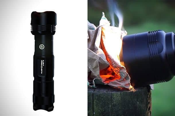 Известная гонконгская компания Wicked Laser представила свою очередную многофункциональную новинку - фонарик, с помощью которого можно не только освещать дорогу домой, но и разжигать костры и даже подогревать пищу. Суть изобретения заключается в использовании термостойкой фокусирующей линзы с мощным отражателям и литий - ионным аккумулятором. Галогенная лампочка Carley Lamps CL 1909 65 BT обеспечивает яркость до 2300 Люмен, корпус, выполнен из сверхлегкого анодированного алюминия. Для разжигания огня необходимо подвести включенный на максимальный режим фонарик к сухой траве или мелким веточкам и подержать несколько секунд. Питание осуществляется от трех 18650 литий - ионных аккумуляторов. Одной зарядки аккумулятор хватает на 30 - 100 мину автономной работы.