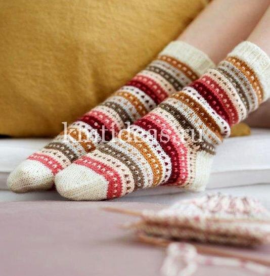 Думаю у всех вяжущих рукодельниц в закромах много разных маленьких клубочков, которые лежат без дела и только занимают место. Предлагаю от них избавиться и связать вот такие потрясающие носочки. Подберите интересные сочетания пряжи и можно начинать вязание.
