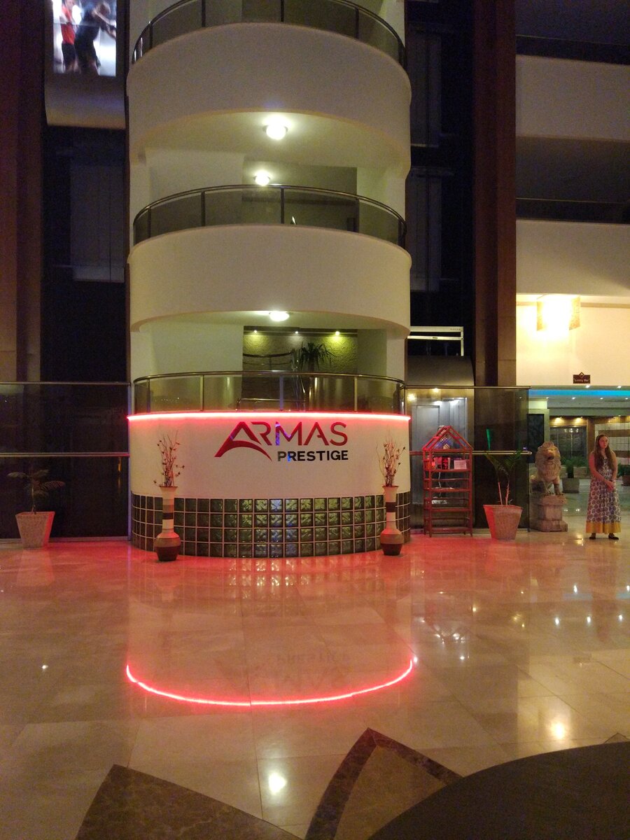 Мы приехали загорать, купаться и подышать морским воздухом, поэтому для нас все это было не критично, но всё же: Отель выбирали по принципу потеплее в конце октября (Алания, в этот период теплее) подальше от цивилизации, и поменьше русскоязычных (в чем ошиблись). Туроператор "Интурист". Обслуживающий персонал только турки" не понимающие по- русски", хотя основная масса туристов русские. Видимо администрации отеля плевать на все, нет контроля за персоналом. Для сети отелей Армас это большой минус. В отеле на 95% русскоязычного контингента. Остальные немцы, поляки, и прочие национальности. Но, все более менее адекватные (видимо сказывается ограниченная выдача спиртного !!!). Для кого то наверное, это единственно-важный аргумент, при выборе отеля. В ресторане дресс-код отсутствует (что обычно соблюдается в "нормальных" отелях-пятерках). Имеется ввиду форма одежды (практически в пляжных костюмах). Можно ходить в купальниках и плавках, лишь бы они были не мокрые (что и написано при вход