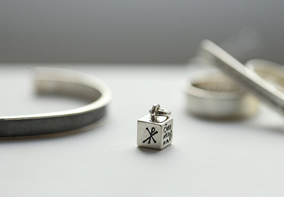 Подвеска в виде куба «Молитва» Возникновение хризмы связано с временами правления императора Константина Великого (4 век н. э.). По преданию, Константин увидел в небе знамение накануне важной битвы - огромный сияющий крест со словами «сим победиши». Вместе с императором это чудо наблюдали ещё 40 тысяч его солдат, о чем свидетельствует египетский историк тех лет Артемий. Тогда воины нанесли этот знак на щиты, а также на особые штандарты - лабарумы. Враг был повержен, а хризма стала государственным символом.