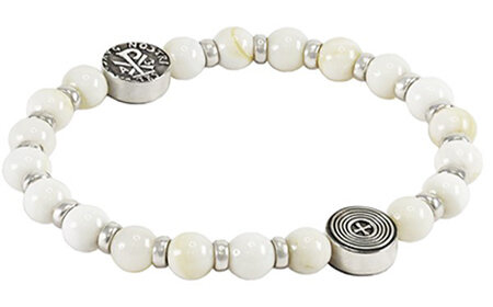 Четки «Хризма» перламутр Как и в случае с ихтисом (помните наш рассказ про рыбу?🐟) хризма является монограммой. ХР - две первые буквы имени Христос, скрещённые между собой. Часто слева и справа от хризмы можно видеть две буквы альфа и омега. Эти буквы стоят здесь неслучайно, их изображение связано с текстом из Апокалипсиса: «Я есмь Альфа и Омега, начало и конец, говорит Господь, Который есть и был и грядет, Вседержитель» (Откр. 1:8; см. также Откр. 22:13). Начальная и конечная бук
