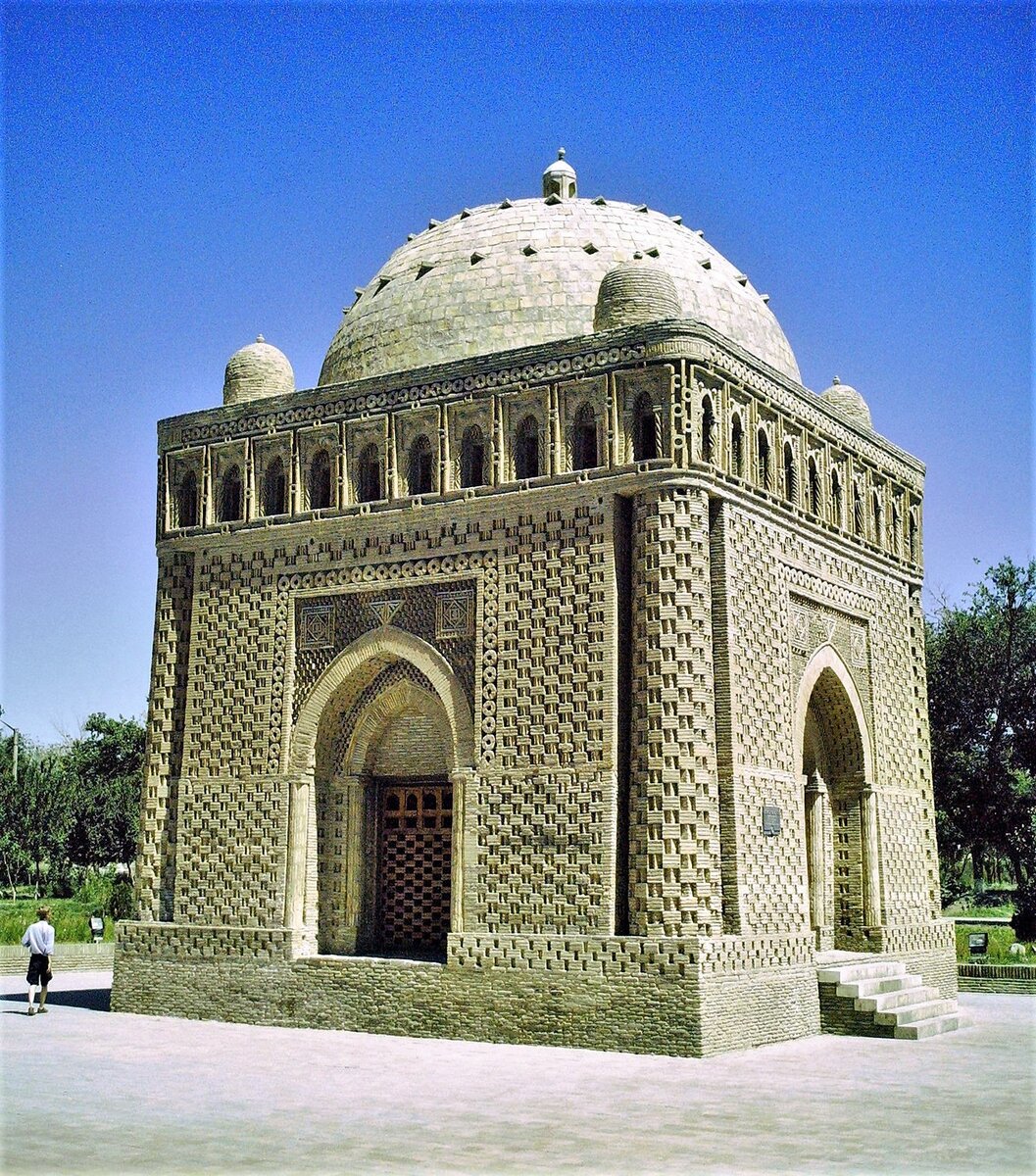 В центре Бухары, на месте старого кладбища разбиты чудесный зеленый парк. Здесь уже в наше время обнаружили великолепный памятник архитектуры, который чудесным образом более тысячи лет сохранился под слоем песка и земли. В мавзолее, который обнаружен, кстати, не так давно - в двадцатом веке, до этого он столетиями стоял полностью засыпанным. Строили его по приказу Исмаила - великого Эмира, основателя таджикской государственности а и, скорее всего, предназначалась усыпательница для отца великого правителя - Ахмада. Здесь похоронены так же сын и внук Исмаила, а вот сам он упокоился то ли здесь, то ли нет на самом деле доподлинно неизвестно. Нам же интересен в большей степени этот мавзолей как величайший шедевр средневековой архитектуры. По-сути он пионер целого архитектурного стиля, возникшего после того как миновала арабская экспансия. Конечно - видеосюжет: В центре Бухары, на месте старого кладбища разбиты чудесный зеленый парк. Здесь уже в наше время обнаружили великолепный пам