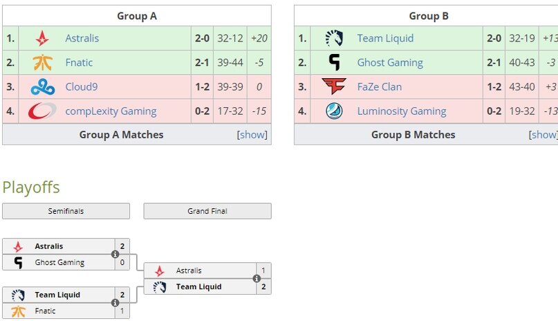 Team Liquid обыграла Astralis в финале iBUYPOWER Masters Подошёл к концу лан-турнир iBUYPOWER Masters IV. В финале сражались две сильнейших команды: топ-1 мира Astralis и топ-3 Team Liquid. Обе команды без особых проблем заняли первое место в своих группах, а в полуфинале плей-офф обыграли оппонентов. Сопротивление оказали только Fnatic, которые сравняли счёт в серии против Liquid на Cache, но не смогли оформить полноценный камбек. Astralis без проблем забрала первую карту best-of-3 финала, но Liquid выиграла пик соперника, Dust2, а затем также уверенно обыграла на Overpass. NAF стал MVP турнира по версии HLTV и получил уже четвёртую награду. РРаспределение призового фонда: