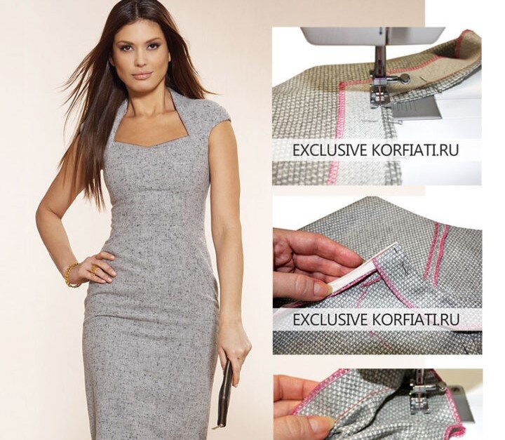 Подкройная обтачка — это один из видов обтачки, который позволяет обрабатывать вырезы самой сложной формы просто идеально! Наша модель — яркий тому пример. Фигурный вырез типа «каре», обработанный филигранно точно, задает тон и полностью преображает заурядное серое платье-футляр в модель экстра-класса! При помощи такого элегантного моделирования вы можете любое платье превратить в потрясающе эффектный наряд. В этом уроке мы подробно расскажем вам как обработать вырез горловины подкройной обтачкой. Из основной ткани выкроите подкройную обтачку для выреза горловины передней половинки изделия (1 деталь со сгибом) и подкройную обтачку для горловины спинки (поскольку у нас по среднему шву спинки предусмотрена застежка-молния, кроим 2 подкройные обтачки для горловины спинки). Вырез горловины, обработанный подкройной обтачкой с лицевой стороны изделия Смотреть весь материал на сайте - https://korfiati.ru/2014/01/podkroynaya-obtachka/