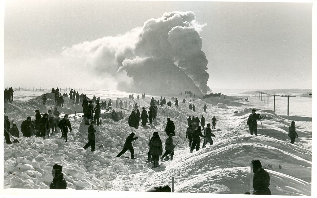 Блогеры ЖЖ Александр и Альфия Гурины из Новоуральска Свердловской области поделились историей очистки железнодорожных путей от снега в оренбургских степях в середине прошлого века: «У нас на дворе май. Тепло. Листочки начали распускаться, медуница цветёт. Не хочется думать о зиме. И тут я нашёл вот такие фотки. Опять-таки в фотоархиве Егора Казакова на «Яндекс-фотках».