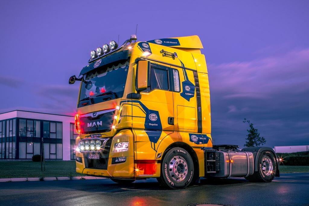 Грузовик MAN TGX, на котором Hella представляет свои самые интересные продукты - фонари как на легковых