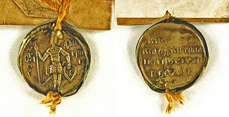 Документ скреплялся печатью. Грамоты владетельных лиц (князей, царей и иерархов) составлялись их дьяками и скреплялись официальными печатями (государственными или церковными).