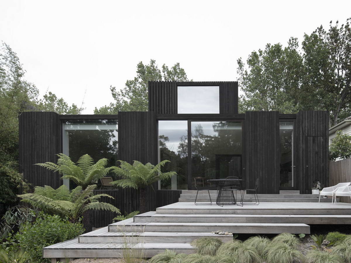 Этот модернистский дом построен на отношениях между ним и элементами его естественной среды. Отверстия на фасаде в разных масштабах восстанавливают территориальные границы, создавая разнообразные связи и диалоги между соседними зданиями, ландшафтами и людьми, которые их занимают. Простая масса, состоящая из простых материалов, фокусирует внимание зрителя на связи дома с окружающей средой. Дом в определенных точках открывается, чтобы создать моменты пористости для пейзажей. На каждом из этих отверстий можно найти различные ландшафтные виды, которые являются уникальными ответами на ориентацию каждого двора, раскрывающими свойства света, воздуха и пропорции пространства. Эти ландшафты влияют на смежные внутренние пространства, которые расширяются или сближаются в гармонии с ландшафтом и функциями. Шероховатый пиломатериал, используемый для наружной отделки, как бы формирует грубую защитную границу, однако продвигаясь по дому, текстура материала меняется, непрозрачность уступает место пр