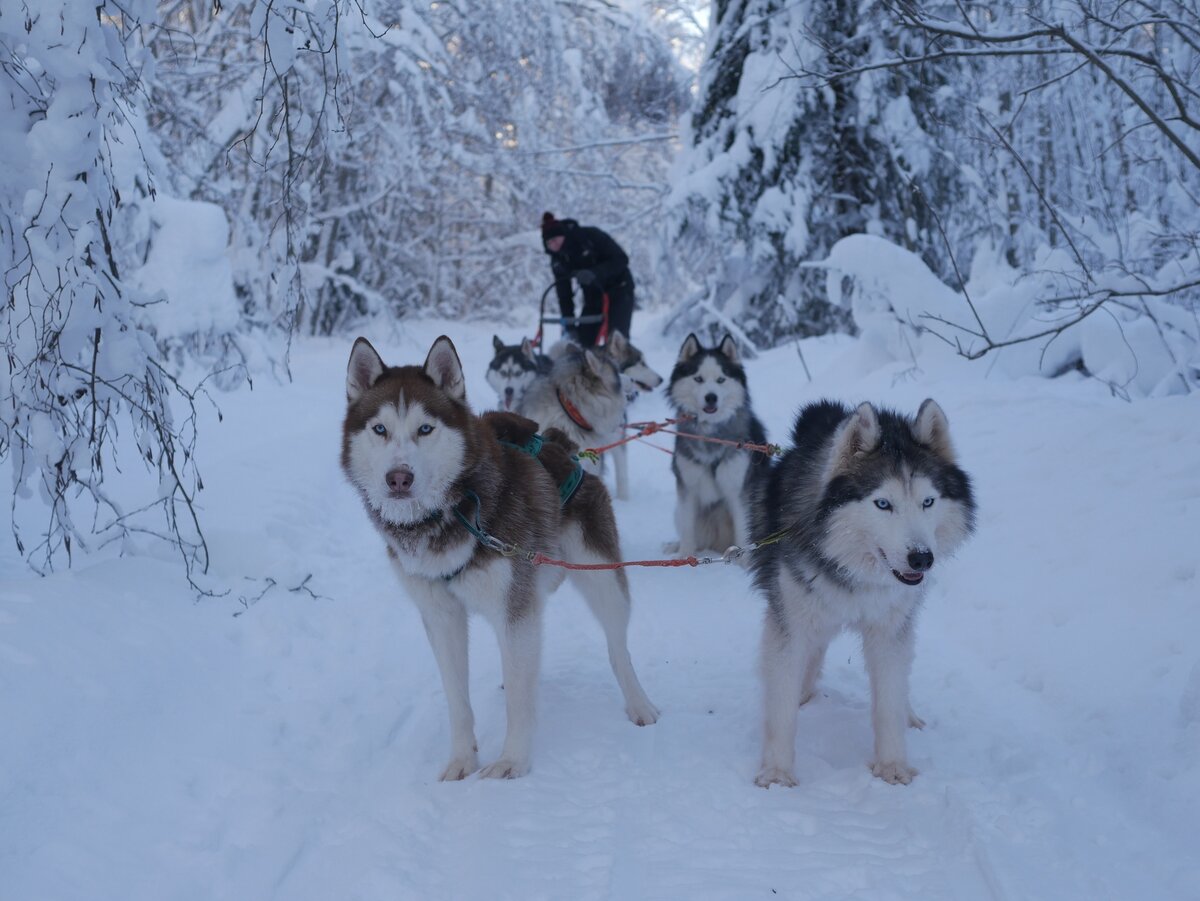 Упряжка собак хасиков и солнечно морозный день , ночью было к слову скажем -24)