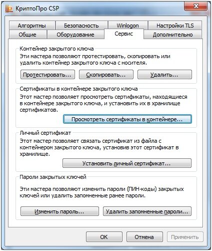 запустить программу КриптоПро CSP и открыть вкладку «сервис» Затем щелкнуть по кнопке «Просмотреть сертификаты в контейнере», после чего нажать «обзор» и выбрать необходимый сертификат. «ОК», «Далее», «Установить», и теперь ваш сертификат находится в личном хранилище пользователя.