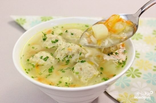 Описание приготовления: Домашний суп с фрикадельками - простой в приготовлении и очень вкусный суп с мясными шариками из фарша с добавлением зелени. Рецепт блюда придумали итальянские мастера кулинарии. Если хотите, то можно добавить в суп с фрикадельками засыпку: гречку, рис либо лапшу. Засыпка добавляется вместе с картошкой. Ингредиенты: Говядина-500 Грамм(фарш) Картофель-4 Штуки Луковица-1 Штука Морковь-1 Штука Болгарский перец-1 Штука(можно не добавлять) Лавровый лист-2Штуки Соль-По вкусу Перец-По вкусу Способ приготовление: 1. Для начала нужно приправить, посолить и поперчить фарш. 2. Мелко нарежьте картофель, лук и болгарский перец. Морковь очистите и натрите на терке. 3. На растительном масле на среднем огне обжарьте лук, затем добавьте морковь и болгарский перец. 4. Доведите до кипения кастрюлю с 2,5 литрами воды. Засыпьте в нее картошку. Добавьте обжаренные овощи. Варите овощи в течение 5 минут. Затем из фарша слепите фрикадельки и бросьте в кипящий бульон. 5. Посо