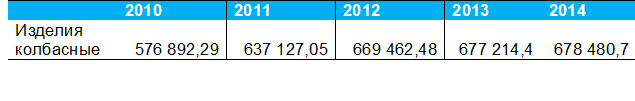 До 2014 года производство пищевых продуктов, в том числе и изделий из мяса в Поволжском регионе росло. Промышленное производство колбасных изделий в России на протяжении ряда лет находится на относительно стабильных отметках 600 тыс.тонн. В 2011-2014 гг. просматривалась некоторая тенденция увеличения объемов производства. В 2014 году было произведено 678,5 тыс. тонн – рекордный за последние годы объем. Показатели могли бы быть и выше, но во втором полугодии производители колбасных изделий столкнулись с удорожанием сырья. Это вызвано ограничением на ввоз импортного мяса из ряда стран (в первую очередь ЕС), а также ослаблением курса рубля (наиболее активная фаза ослабления рубля в 2014 году – ноябрь-декабрь). Таблица 1. Объем производства колбасных изделий (тонны). Источник: https://fedstat.ru/ Как видно из таблицы 1 и диаграммы 1 происходил постоянный рост в натуральном выражении колбасных изделий в Поволжском регионе РФ. Диаграмма 1. Динамика роста объемов производс