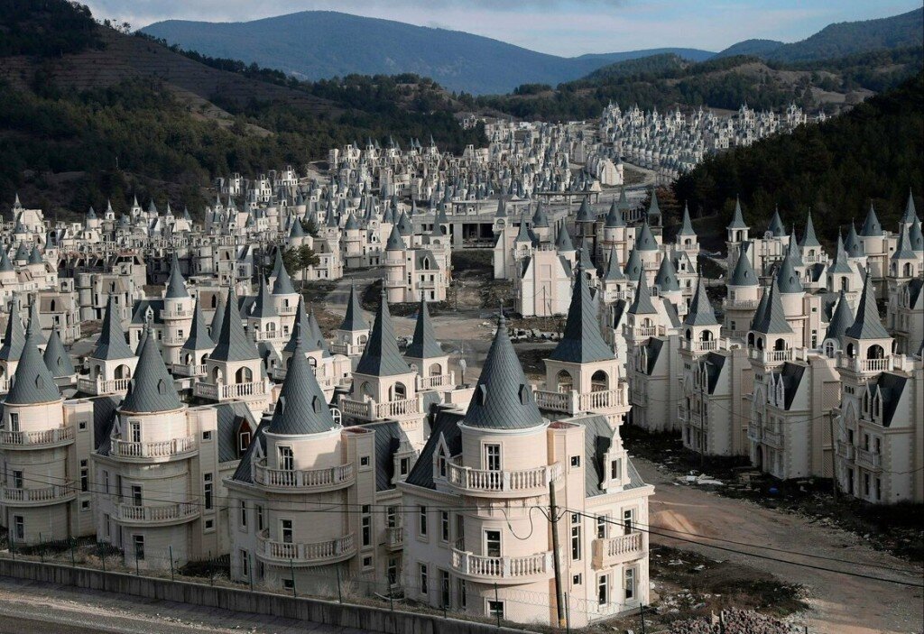 В Турции в 2014 году начали строить «люксовый» город для состоятельных людей. В провинции Болу возвели 587 вилл. Они очень похожи на диснеевские замки. Планировалось, что там ещё будут бассейны, салоны красоты и здоровья, турецкие бани, мечеть и ТЦ. Но осенью 2018 года фирму признали банкротом, а дома стали заброшенными.