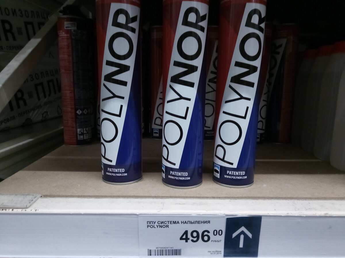 Сегодня хочется поделиться с вами опытом применения вот такого интересного утеплителя и высказать свое мнение по этому поводу. Итак начнем пожалуй с того что это первооткрыватель, на Российском рынке, такого рода товаров. Марка Полинор (POLYNOR), появилась довольно таки недавно. Честно точно сказать не могу, но что то около 5 лет назад я ее продукцию уже видел, по цене 175 рублей! Да, было время...) Сейчас этот утеплитель в Леруа Мерлен стоит 496 рублей. Применение очень простое, накрутить баллон на специальный многоразовый пистолет, надеть распыляющую насадку и вперед! Распылять содержимое на утепляемую поверхность. Делать это необходимо с расстояния 30-45 сантиметров. У меня сосед на даче, утеплять дом такой штукой стал. Говорит очень все понравилось и тепло стало реально. Стены перестали промерзать! Еще бы ведь коэффициент теплопроводности застывшего утеплителя 0,023 Вт/(м*К). Это приблизительно получается что 5 см утеплителя, заменяют стену из пенобетона толщиной 30 см! Срок службы