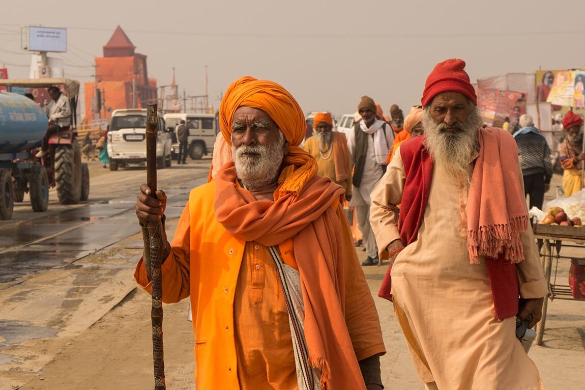 Территория, на которой проходит праздник, настолько огромна, что пешком обойти ее почти нереально. Нас выручил таксист, с которым мы приехали на этот праздник. Он и довез нас до той части, где живут просветленные, святые и садху.