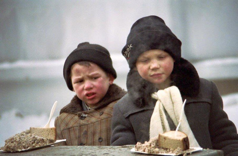 Из жизни сверхдержавы Уполномоченный по правам ребенка в Кемеровской области Дмитрий Кислицын сообщил о голодных обмороках у детей в школах региона. И связано это не просто с тем, что дети не хотят кушать столовскую еду. По словам омбудсмена, к нему стали обращаться классные руководители, которые заметили социальное расслоение среди учеников, связанное с питанием. Одни дети у нас идут на обед в школах, а другие сидят в классах и не обедают. Участились случаи падения детей в голодные обмороки, что заставляет тревожиться. У родителей нет денег, чтобы покормить ребенка с утра, а тем более дать ему на обед те самые 50 рублей, которые ребенок должен платить за обеды. Эти случаи не единичные, сначала был один ребенок, теперь покатился целый ком, - сообщил уполномоченный. Он отметил, что такая ситуация наблюдается с учениками сельских школ и детьми, которых привозят в школы из поселков. С учётом нынешней ситуации, скоро и до городских неблагополучных дойдёт. А вы всё ещё верите, что девяност