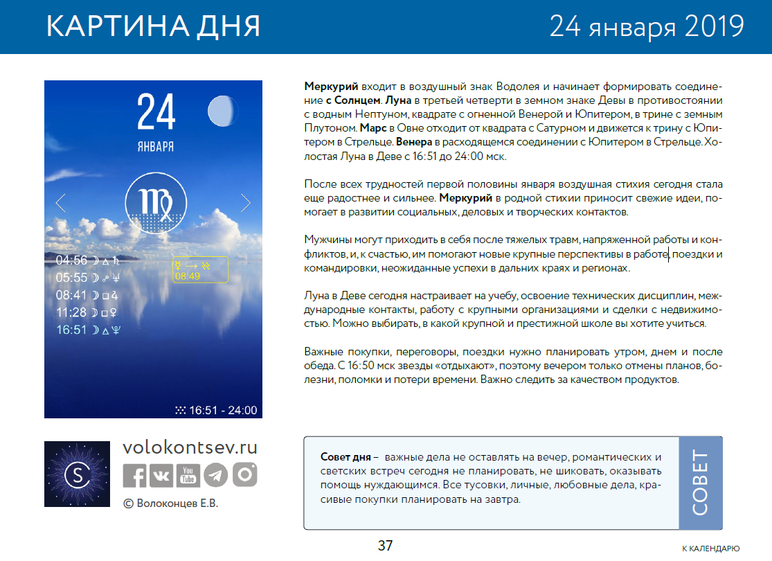 ПРОГНОЗ НА ДЕНЬ. Четверг 24 января - Луна в Деве, Меркурий в Водолее.