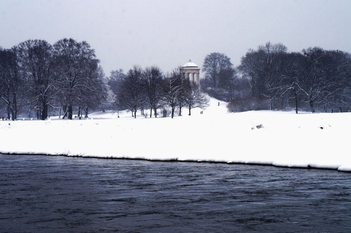 Наконец расскажу вам о том, каким снежным может быть Мюнхен. И покажу) Английский сад (или по-местному Englischer Garten) - это жемчужина столицы Баварии. Сердце города, его легкие и его душа. Именно здесь летом собирается молодежь с ящиками Августинера, здесь устраивают семейные пикники, здесь катаются на велосипедах и бегают, кормят уточек, серфят и даже плавают, хотя это строго запрещено. Здесь же можно в теплую погоду встретить нудистов (и горожане не удивляются, ведь этот парк поклонники FKK - Freikörperkultur - облюбовали еще в 70х годах). Но таким, как этой зимой, Английский сад уже давно никто не видел. Снега высыпало столько, что мюнхенцы от мала до велика побежали сметать с витрин магазинов санки и ледянки, а также Schneehose (лыжные шуршащие штаны), чтобы одно место не промокло и не замерзло. Дело было 10 января, я специально взяла на занятия фотоаппарат, чтобы после немецкого успеть запечатлеть сад по всем его снежном антураже, пока не стемнело. И, могу сказать, это мне уд