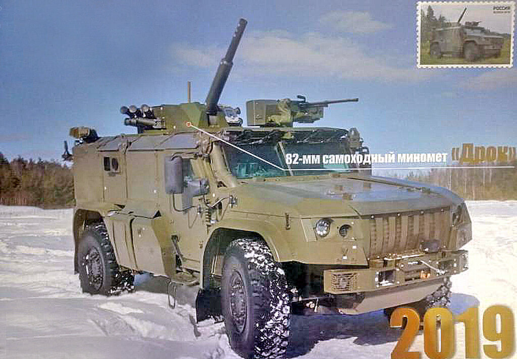 На 11-тонной платформе четырехколесного полноприводного бронеавтомобиля КамАЗ-4386 «Тайфун ВДВ» установлен боевой модуль с новейшим 82-мм отечественным минометом «Дрок». Проект получил название «самоходная артиллерийская установка 2С41» и уже засветился в российских СМИ. Сообщается, что машина с минометным модулем предназначается для ВДВ России. Миномет имеет возимый боекомплект 40 зарядов и способен поражать цели на дистанции до 6 километров, выполняя до 12 выстрелов в минуту. На броневике установлен комплекс оптикоэлектронного противодействия, который в случае необходимости сможет укрыть автомобиль плотным аэрозольным облаком и защитить от атакующих высокоточных боеприпасов.