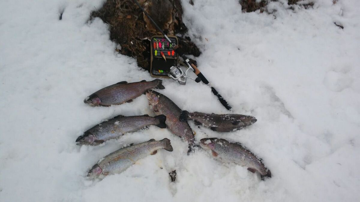 По приеду на платнике были неприятно удивлены нововведениями. Убрали тариф "спиннинг" за 500 руб., с последующей оплатой выловленной рыбы, и ввели тариф за 2500 с нормой 10 кг. Т.к. прошлый раз мне удалось выловить 6 кг., то решили рискнуть. Но по закону подлости наше любимое место было уже занято и было много соскучившихся по открытой воде, пришлось тесниться. Клев был отвратный, даже на фидера и удочки на пасту поклевки случались раз в полчаса. С 8 часов до 16 удалось уговорить только шесть форелевая, общим весом 4,7 кг. Отличились блесна с правой стороны кошелька. И что интересно клевало только раз на одну блесну, и сколько не кидай больше поклевок не следовало. Но при смене блесны сразу следовала поклевки. Работали в основном темные цвета. Буратинки не работали. По приезду домой, забабахал сагудай!