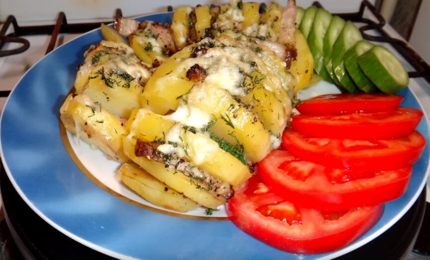 Картошка "гармошка" с салом и сыром - вкусно, быстро и просто