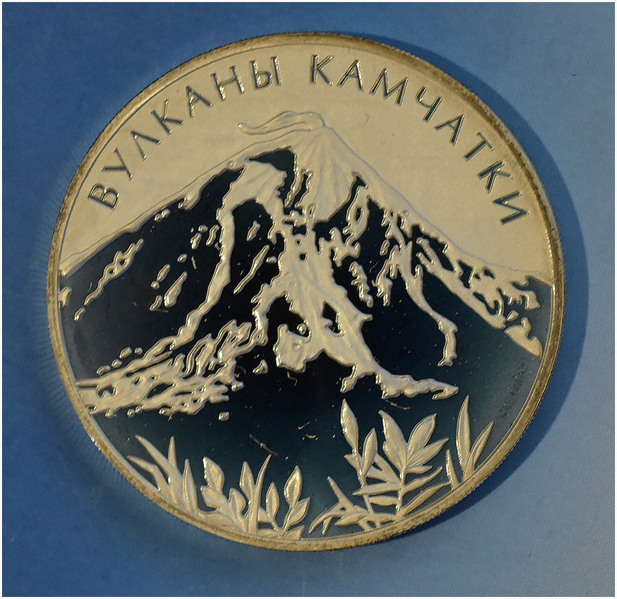 ВУЛКАНЫ КАМЧАТКИ НА СЕРЕБРЯНОЙ МОНЕТЕ