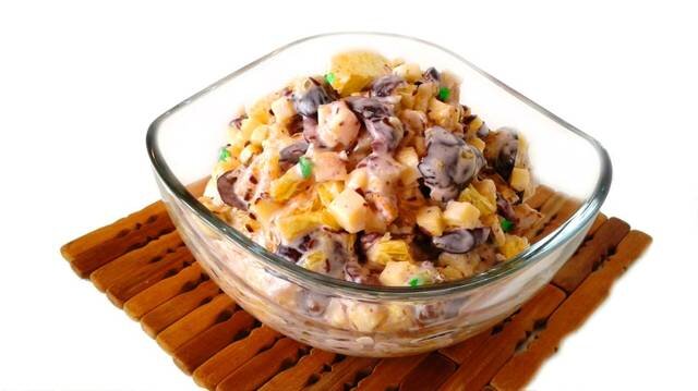Есть салаты, в которых используются совершенно, казалось бы, не совместимые продукты. Однако в соединении вот эта несовместимость образует нечто потрясающе вкусное. Рецепт одного из таких салатов я хочу Вам сегодня показать…