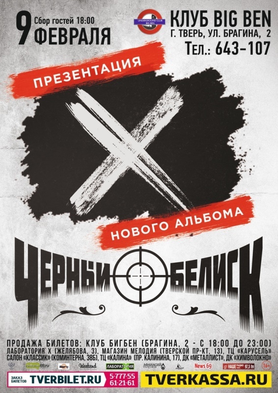 9 февраля в стенах клуба «Бигбен» пройдет концертная презентация нового материала рок-группы. Десятая по счёту пластинка в дискографии легендарной команды должна стать настоящим откровением для многочисленных болельщиков «Обелиска». Бескомпромиссный, ироничный и самый тяжёлый альбом группы – так можно охарактеризовать готовящуюся работу. По словам музыкантов, слушателей ждут 11 музыкальных полотен на разные темы, не скованных конкретными стилистическими рамками, но выдержанных в фирменной драйвовой и экспрессивной манере. Уникальная способность «Чёрного Обелиска» оставаться актуальными на протяжении более 30 лет, двигаться вперед и звучать в тон современной тяжёлой музыке – всё это объединилось в будущем Юбилейном альбоме под символическим названием «Х». В программу большого концерта, по традиции, войдут все главные хиты группы с прошлых релизов! Начало концерта в 18.20 Более подробную информацию о предстоящем мероприятии можно получить по ссылке. Газета «Караван+Я» выходит на террит