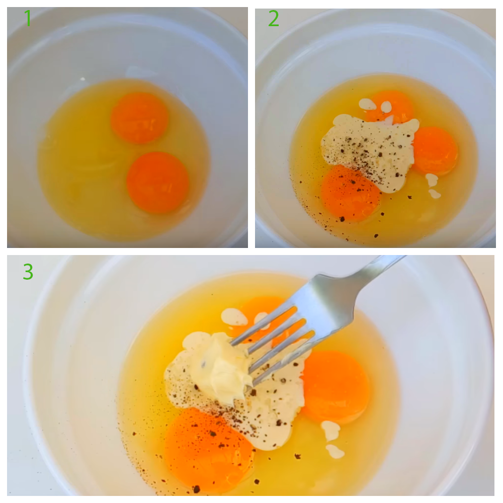 Ингредиенты: Куриное яйцо 3 шт. Соль, перец Сливки 2 ст/л. Сливочное масло Плавленный сыр Майонез Зубчик чеснока Шаги: 1 - Берем миску, добавляем 3 куриных яйца, 2 - 2 столовых ложок сливок, соль, перец и 3 - Маленький кусок сливочного масла и перемешиваем до однородной массы Выливаем массу на сковородку и ставим минимальный огонь 1 - Берем кусок плавленного сырка и натираем его на терке 2 - Выдавливаем зубчик чеснока и добавляем майонез 3 - Перемешиваем К этому моменту наш омлет готов 1 - Размазываем по его поверхности нашу начинку 2 - Заворачиваем в трубочку В итоге получается вкусный и сытный рулет на завтрак