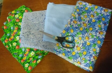 У меня появилась внучатая племянница, и я решила сделать для неё книжку – развивашку. Процесс создания такой книги не быстрый, но очень увлекательный. Как я ее делаю, хочу показать вам и поделится некоторыми своими секретами. 1. Для книжки – развивашки я использую различные ткани. 2. Также мне нужны обложки от картона. Почему именно обложки, а не просто картон? Могу сразу ответь: «Обложка от картона в два раза больше чем просто картон и имеет хороший сгиб по середине. Так гораздо удобнее делать не одну страницу, а целый разворот». 3. Для имитации неба берем голубую ткань. Для имитации земли – в цветочек или просто зеленую ткань. 4. Для начала подбираем несколько обложек от картона (количество зависит от количества запланированных страниц. Одна обложка – одна страница книжки). Все обложки подгоняем под один размер. Выбираем самую маленькую ширину и самую маленькую высоту. Стандартизируем все картонки. 5. Выбираем голубую ткань. Раскраиваем ее по размеру больше картона. Делаем припус