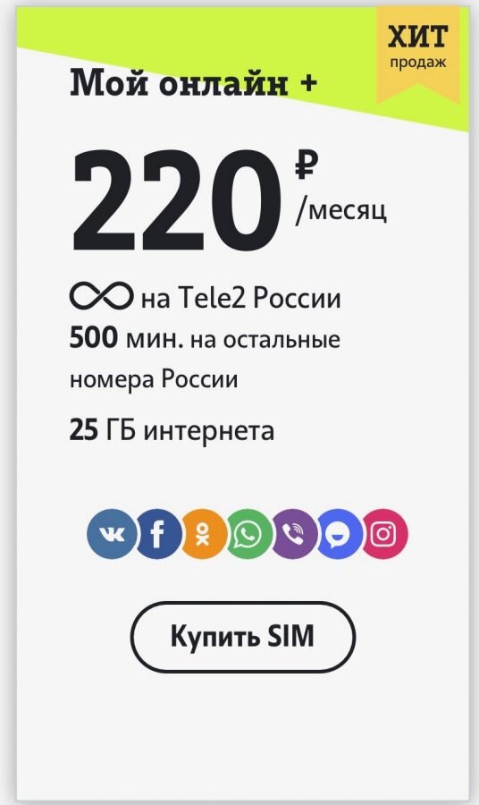 Нахожусь сейчас в Нижнем Новгороде. И есть у меня привычка в каждом городе сравнивать тарифы операторов. Просто из любопытства, чтобы понять их самочувствие в регионе и общий уровень жизни. Не секрет, что по сравнению с Москвой дисконт бывает и в полтора раза, и в два за то же самое. Посмотрел всех, захожу на Tele2, а там… чудо. «Мой онлайн +», куда входят безлимит на Tele2, 500 минут звонков на любые номера России, 25(!) гигабайт интернета и безлимитные соцсети/мессенджеры (сорри, без Телеграма) стоит… 220 рублей. Это, мягко говоря, щедро. Ближайший (и единственный конкурент) — тариф Smart для своих у МТС, к которому еще попробуй подключись. А тут — пожалуйста. Зашел с ноутбука на сайт, нашел там «Мой онлайн +», но он стоил уже 550 рублей. Заподозрил, что на мобильной версии глюк или артефакт. Решил оформить заказ с телефона, и все прошло благополучно. Даже красивый номер за 150 рублей продали. Симку заказал с самовывозом (точнее, с самовыносом) из ближайшего салона. В салоне на расп